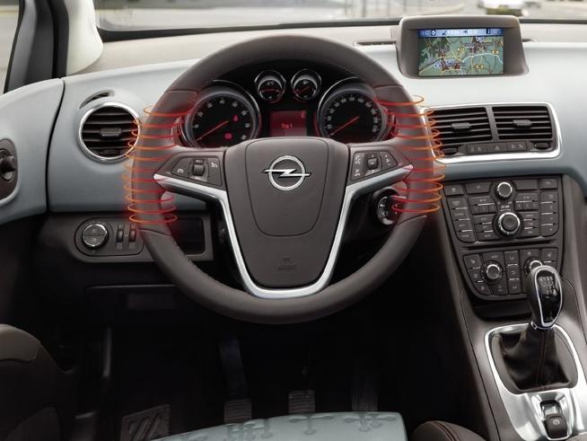 минут после начала движения. Причиной является то, что температура пальцев водителя обычно на 5-10 ° ниже, чем температура тела, что создает дискомфортные ощущения. На новом Opel Meriva рулевое колесо с электрообогревом станет теплым всего за несколько секунд после включения зажигания. Это избавляет водителя от необходимости носить перчатки (ухудшающие хват рулевого колеса) и позволяет ему чувствовать себя в безопасности.