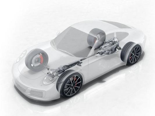 Важная составная часть всех полноприводных моделей 911: усовершенствованная система Porsche Traction Management (PTM). Позаимствованная у 911 Turbo электронноуправляемая многодисковая муфта, входящая в состав PTM, еще быстрее и точнее, чем раньше, перераспределяет крутящий момент между задней осью с постоянным приводом и передней осью. Непрерывный контроль условий движения позволяет реагировать на возникновение различных ситуаций. Датчики постоянно следят за частотой вращения всех 4 колес, за продольными и поперечными ускорениями автомобиля, а также за углом поворота рулевого колеса. Если, например, при разгоне задние колеса начинают буксовать, многодисковая муфта направляет больший крутящий момент на передние колеса. Так система PTM во взаимодействии с Porsche Stability Management (PSM) в любой ситуации обеспечивает надлежащее перераспределение крутящего момента для обеспечения оптимальной тяги и особенно гармоничных ходовых качеств в предельных режимах.