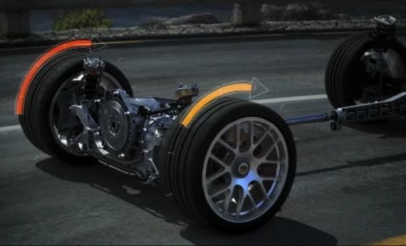 Система Porsche Torque Vectoring (базовая комплектация для моделей 911 Turbo S, опция для моделей 911 Turbo) с бесступенчатым распределением момента между задними колесами и механической блокировкой заднего дифференциала – это система активного повышения динамики и устойчивости движения.