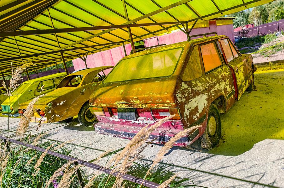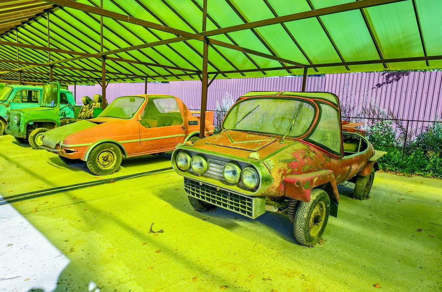 Справа за аттракционами – длинный ряд самодельных автомобилей СССР, созданных в единственном экземпляре. Здесь вы увидите: