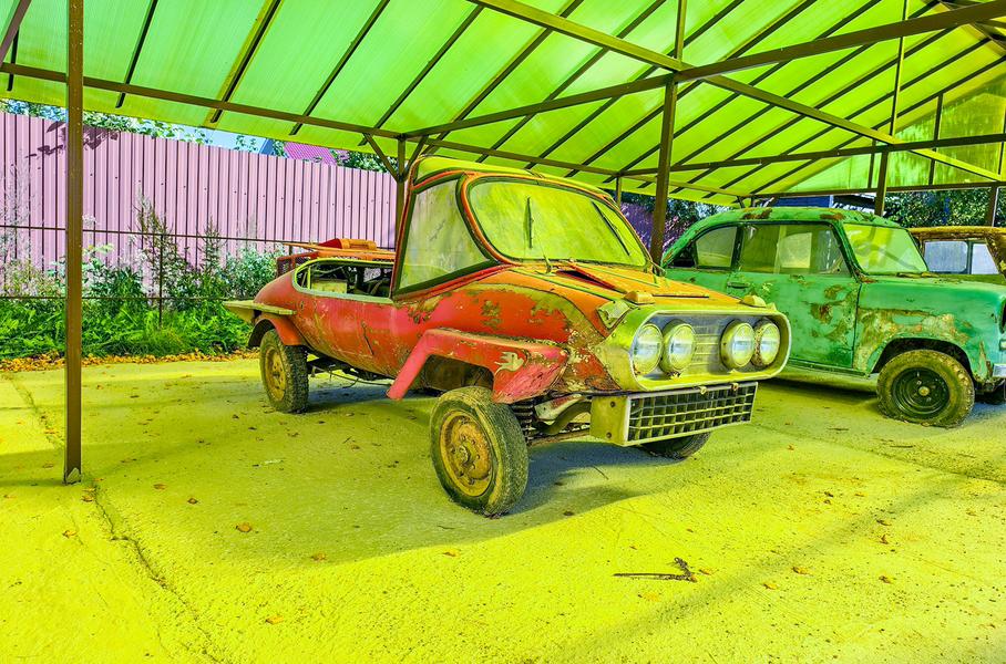 - Рядом с ним стоит Иволга — это видоизменённый кузов от Москвича, в который поставили двигатель и коробку передач от Жигулей.