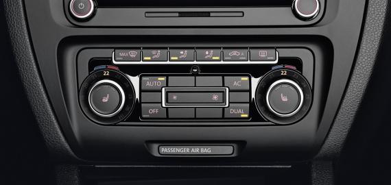 Держать голову в холоде — или всё же в тепле? Благодаря системе Climatronic достаточно нажать лишь одну кнопку, чтобы создать желаемый микроклимат. Температура регулируется электроникой, при этом настройки можно производить отдельно для левой и правой зоны салона. Вы можете полностью сосредоточиться на дороге, а специальный датчик будет отслеживать качество наружного воздуха — при необходимости по сигналу от него система автоматически переключится в режим рециркуляции. Climatronic входит в стандартное оснащение начиная с комплектации Highline.